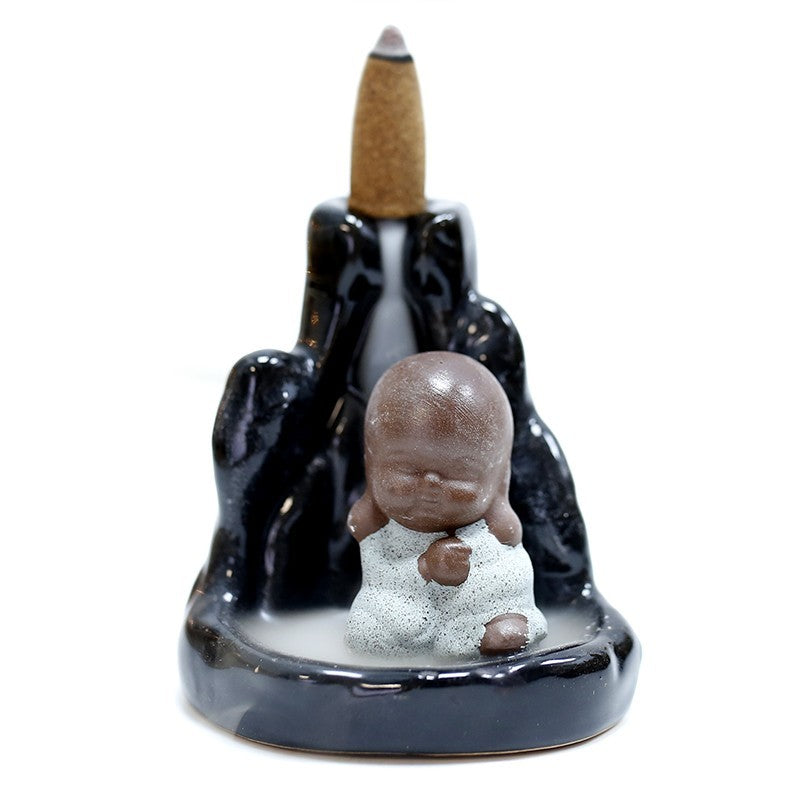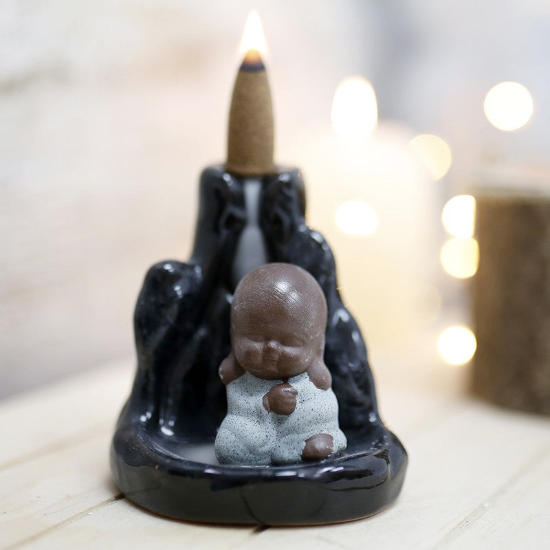 Fuente de humo en cascada Buda pequeño, de cerámica,